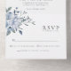 Floraux d'aquarelle élégante et feuillage feuillu bleu foncé avec carte postale RSVP détachable pour faciliter l'envoi.