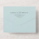 Un faire-part de mariage moderne et élégant tout en un monogramme dispose d'une carte bleu aqua clair avec typographie gris foncé. Cette invitation est parfaite pour ceux qui désirent un mariage simple mais élégant. Vos invités se contentent de déchirer le RSVP qui a été préimprimé avec votre adresse de retour et de vous le renvoyer par la poste. Vous pouvez écrire à la main le nom et l'adresse postale de vos invités au recto de la carte