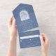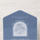 Cette élégante faire-part de mariage tout-en-un est ornée d'un arrière - plan bleu poussiéreux, d'une illustration de confluent dessinée à la main et d'une typographie d'inspiration vintage. Il suffit de le sceller puis de l'envoyer - Pas besoin de commander des enveloppes! Ce design serait un choix fabuleux pour un mariage à tout moment de l'année. Consultez la collection pour la coordination des articles !