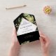 Invitation Tout En Un Élégant Mariage botanique Tropical Noir & Or