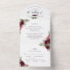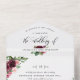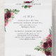 Élégant Faire-part de mariage tout-en-un Burgundy Blush Floral avec RSVP perforé. Respectueux de l'environnement puisqu'il n'est pas nécessaire d'insérer des cartes supplémentaires, des cartes RSVP ou même des enveloppes, cette invitation a tout ! Possibilité d'ajouter à la fois les détails de la cérémonie et de la réception des Mariages, ainsi que la carte postale RSVP prêt à être rempli et envoyé par la poste! Un design captivant avec des éléments floraux d'aquarelle burgundy, rose et rousse et des détails de calligraphie manuscrits modernes. Option pour envoyer par la poste sans besoin d'enveloppes et commander des invitations avec des noms d'invités imprimés au dos ou laisser en blanc pour les écrire à la main plus tard - OU - envoyer des invitations avec des enveloppes et ajouter à sa place une phrase ou un message. Cette même invitation avec photo dans le "dos" au lieu de la zone pour les noms d'invités avec adresse ou devis, est également disponible. Design attrayant idéal pour le couple élégant, mais pratique et respectueux de l'environnement!