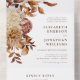 Élégant Mariage d'automne tout en une invitation. Cette élégante faire-part de mariage tout-en-un présente des feuilles d'aquarelle peints à la main, orange brûlé et terre cuite, des dahlias crème et beige, et de beaux roses de couleur rouille sur un arrière - plan blanc. RSVP avec choix de repas est inclus avec cet invitation élégant. Trouvez les articles correspondants dans la collection White Autumn Romance.