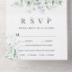 Ce tout en une carte de faire-part de mariage comprend des eucalyptus à l'aquarelle peinte, des feuilles verts, une invitation de mariage avec une carte postale rsvp pour vos invités à couper et renvoyer. Pour une personnalisation plus avancée de cette conception, cliquez sur le lien "customiser plus loin". Des articles correspondants sont également disponibles.