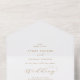 Cet élégant mariage de script or tout en une invitation est parfait pour un mariage simple. Le design minimaliste or et blanc présente une typographie romantique avec style glamour moderne. Personnalisable dans n'importe quelle couleur. Gardez le design minimal et élégant, tel quel, ou personnalisez-le en ajoutant vos propres graphiques et artwork. Écrivez vos adresses d'invités à l'arrière de l'invitation pliée, ou achetez les autocollants de étiquette de adresse d'invités de coordination (vendus séparément).