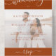 Invitation vos amis et les proches à votre mariage dans ce thème moderne et élégant en terre cuite tout en un mariage invitent dans une police de calligraphie simple. Écrivez les détails de votre mariage et remplacez la photo.