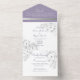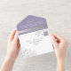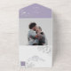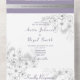 Elégant, moderne, vintage, boho, floral pourpre tout-en-un faire-part de mariage tout-en-un avec dentelle florale gris argenté et image du couple. Ajoutez vos photos, détails mariages et rsvp.