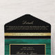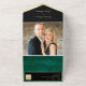 Elégant, moderne, luxueux, vert émeraude minimal, or et noir tout-en-un faire-part de mariage avec photo personnalisée du couple à l'arrière. Ajoutez votre photo, les détails du mariage et rsvp.