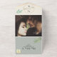 Élégant, botanique, moderne, simple sauge vert et or tout en un faire-part de mariage avec code QR, monogramme unique avec des oiseaux de couple d'amour dessinés à la main, script manuscrit tendance et image personnalisée de l'arrière. Ajoutez votre photo, les détails du mariage et rsvp.