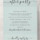 Étage moderne vert menthe ou faire-part mariage privé et réception le tout dans une seule invitation. Customisez votre faire-part salon/mariage, invitation à la réception et choix de menu. "Happily Ever After Party" est écrit dans une simple typographie et un script contemporain avec des swashes. Une carte postale RSVP détachée offre une réponse commode, écologique et sans enveloppe de la part de vos invités.
