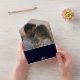 Introducing our customizable all-in-one foldable invitation card, designed for the modern couple seeking elegance and simplicity. This beautifully crafted card features a clean, sophisticated look with space for your own favorite couple photo. Maybe even from the engagement of your last trip or holiday. A romantic and personal invitation wit elegant modern script text in white text on dark navy blue background, capturing the essence of your special day in a timeless design.