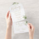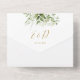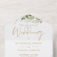 Faire-part de mariage tout-en-un avec feuillage botanique, feuilles rustiques et typographie dorée élégante. L'invitation comprend une carte RSVP perforée qui peut être adressée individuellement ou laissée vierge pour que vous puissiez écrire à la main les coordonnées de vos invités. Conçu par Thisisnotme©