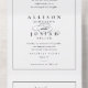 Élégant Monogramme Mariage noir et blanc tout en une invitation. Il y a une déchirure de la carte RSVP. Cliquez sur le bouton Modifier pour customiser cette conception.