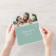 Créez la suite Mariage parfaite avec ce faire-part de mariage tout en un romantique et délicat, avec une ligne d'orchidées sophistiquée qui surplombe un arrière - plan contemporain vert menthe. Modifiez facilement les champs modèles pour ajouter les noms de mariée et de mariée ainsi que les détails de votre date et de votre emplacement dans des polices blanches élégantes et élégantes. Le haut de la carte est personnalisable avec l'une de vos photos fiançailles préférées. Consultez la collection "Delicate Orchids - Mint Green mariage suite" correspondante pour voir tous les éléments de coordination.