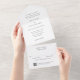 Elegant all in one wedding invitation featuring a simple and classic design with traditional serif and elegant script fonts. Use the template to generate a QR code to the attached RSVP card or use the design editing tool to remove it.