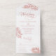 Cet élégant mariage tout-en-un d'or rose présente des calligraphies de script et des feuilles tropicaux avec un arrière - plan blanc. *Si vous souhaitez d'autres produits avec ce design, ou si vous avez besoin d'aide, veuillez me contacter par l'intermédiaire de Zazzle Conversation.