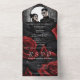 Présentant notre faire-part de mariage à thème gothique avec un arrière - plan floral noir et rouge foncé. Le haut de l'invitation peut être customisé d'une photo pour rendre cette invitation unique à vous. Cette invitation conviendra parfaitement aux couples qui recherchent une esthétique gothique pour leur journée spéciale. Le papier traditionnel RSVP est inclus, de sorte qu'avec le design tout-en-un, les clients peuvent facilement déchirer la section RSVP et l'envoyer par la poste. De plus, nous avons fourni de l'espace pour les courriels et les informations sur le site Web pour les RSVP, assurant ainsi un processus RSVP transparent et pratique.