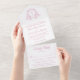 Invitation Tout En Un Élégant Rose rose floral Crest Mariage