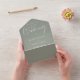 Le tout dans un faire-part de mariage avec une élégante typographie sur un arrière - plan vert sage. L'invitation comprend une carte RSVP perforée avec un code QR. Conçu par Thisisnotme©