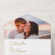 Le tout dans un faire-part de mariage avec votre photo, initiales monogrammes et élégante typographie minimaliste dorée moderne. L'invitation comprend une carte RSVP perforée qui peut être adressée individuellement ou laissée en blanc pour que vous puissiez écrire à la main les coordonnées de votre invité. Conçu par Thisisnotme©