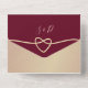 Simple, élégant, minimaliste, moderne faire-part de mariage tout-en-un rouge bordeaux avec coeur romantique de corde dorée et image personnalisée du couple à l'arrière. Ajoutez votre photo, les détails du mariage et rsvp.
