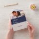 Le tout dans un faire-part de mariage avec votre photo, initiales monogrammes et élégante typographie moderne minimaliste sur un arrière - plan bleu marine. L'invitation comprend une carte RSVP perforée qui peut être adressée individuellement ou laissée en blanc pour que vous puissiez écrire à la main les coordonnées de votre invité. Conçu par Thisisnotme©