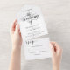 Invitation Tout En Un Élégant script noir et blanc Mariage simple