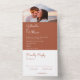 Invitation Tout En Un Élégant Script Terracotta Monogramme Mariage photo