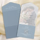 Ce design comprend un simple minimaliste moderne élégant bleu poussiéreux, avec un code QR rsvp site en ligne, un style de superposition photo vellum, une couleur romantique bleu poussiéreux, une police de script de calligraphie tendance, une réponse moderne en ligne, un modèle tri-plié, un sceau élégant et design d'envoi, un modèle photo faire-part de mariage, un texte blanc de couleur massif simpliste