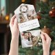 Colorful, elegant and festive watercolor wreath with deep red and green poinsettias, berries and greenery encircles your initial or monogram on a two-photo template and editable text fields. The panels feature additional text fields, complementary winter botanical embellishments and a bonus tearaway keepsake photo template.