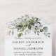 Elégante aquarelle moderne Botanical Greenery Mariage All In One Invitation avec la carte RSVP comprend des feuilles d'eucalyptus, le feuillage botanique vert, feuilles bleus poussiéreux et d'autres belles verdure botanique.