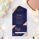 Cette invitation de Bar Mitzvah élégante et tout-en-un combine un design classique avec une élégance pratique. Avec un fond bleu marine profond, des accents de faux rose gold scintillants et des textes en anglais et en hébreu, elle comprend l'invitation principale et la carte de réponse dans un format pliable élégant. Parfait pour les célébrations modernes qui honorent la tradition avec une touche raffinée et luxueuse.
