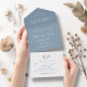 Invitation Tout En Un Élégante Dusty Bleu Romantique Calligraphie Simple
