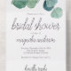 Cette invitation à la douche nuptiale avec ses tiges d'eucalyptus aquarelle peut être personnalisée avec les détails de l'événement. **VEUILLEZ LIRE AVANT DE COMMANDER** Si vous modifiez la forme ou la taille ou choisissez un autre produit et que le design est recadré de quelque façon que ce soit ou ne semble pas sur la page, vous devrez utiliser le service de design en direct pour que quelqu'un vous adapte la disposition, sauf si vous êtes à l'aise de le faire vous-même. Il n'y a pas de vérification manuelle ou d'intervention entre le placement de la commande et l'impression, donc ce que vous voyez à l'écran est ce qui vous sera imprimé et expédié. Dans cet esprit, veuillez également triple-vérifier pour toute erreur d'orthographe ou information incorrecte avant de passer votre commande.