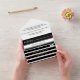 Cette élégante faire-part de mariage en noir et blanc est parfaite pour un mariage moderne. le design simple présente une élégante calligraphie noir et blanc sur un arrière - plan à rayures noir et blanc.