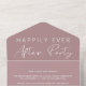 Elégante salle de roses poussiéreuse ou faire-part de mariage privé et réception post mariage le tout dans une invitation. "Happily Ever After Party" est écrit dans un mélange de typographie simple et d'écriture moderne. Une carte postale RSVP détachée offre une réponse commode, écologique et sans enveloppe de la part de vos invités.