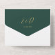 Le tout en un faire-part de mariage vert émeraude et or avec une typographie script de coeurs élégants et des initiales monogrammes. L'invitation comprend une carte RSVP perforée avec votre code QR du site Web mariage et des détails. Conçu par Thisisnotme©