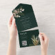 Invitation Tout En Un Emerald Green & Gold Greenery QR Code RSVP Mariage