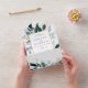 Emerald Greenery Mariage de feuilles de bois tout en un tout en un Invitation. Belle faire-part de mariage moderne minimaliste avec aquarelle peinte à la main avec feuilles or, cadre géométrique or et script de calligraphie moderne. Botanique tout en un seul faire-part de mariage. Ce mariage de bois vert émeraude tout en une invitation est conçu avec une carte postale RSVP perforée facile à déchirer. Plier simplement la carte, sceller et envoyer (pas d'enveloppe nécessaire). Vous pouvez personnaliser le libellé, le style de police, la couleur et la taille devant et derrière l'invitation. N'hésitez pas à me contacter pour les articles correspondants.
