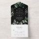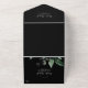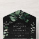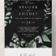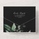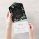 Ce mariage noir vert émeraude, tout en une seule invitation, est parfait pour un mariage boho. Le design élégant et rustique présente des feuilles d'aquarelle vert foncé moody et des eucalyptus aux tons bohèmes modernes. Écrivez vos adresses d'invités à l'arrière de l'invitation pliée, ou achetez les autocollants de étiquette de adresse d'invités de coordination (vendus séparément).