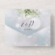 Faire-part de mariage d'hiver reporté tout-en-un avec feuillage botanique, feuilles rustiques et typographie élégante sur fond de flocon de neige. L'invitation comprend une carte RSVP perforée qui peut être adressée individuellement ou laissée vierge pour que vous puissiez écrire les coordonnées de vos invités à la main. Conçu par Thisisnotme©
