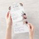 Élégant Faire-part de mariage Floral All-in-One en espagnol avec perforation RSVP. Egalement disponible en anglais. Respectueux de l'environnement puisqu'il n'est pas nécessaire d'insérer des cartes supplémentaires, des cartes RSVP ou même des enveloppes, cette invitation a tout ! Possibilité d'ajouter à la fois les détails de la cérémonie et de la réception des Mariages, ainsi que la carte postale RSVP prêt à être rempli et envoyé par la poste! Un design magnifique avec des détails de fleurs d'aquarelle exquis dans une belle combinaison de teintes violet, mauve, lilas, lavande, rose, bordeaux et crème. Possibilité de commander des invitations avec un nom d'invité imprimé (ou écrit à la main plus tard) ou une phrase au verso afin que vous puissiez l'envoyer sans besoin d'enveloppes, ou ajouter un message personnel ou un devis. Même design d'invitation avec photo à l'arrière au lieu de noms d'invités ou de devis également disponible. Un design attrayant, idéal pour un couple élégant, mais pratique et respectueux de l'environnement !