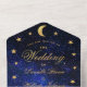 Invitation Tout En Un Étoiles d'or Mariage céleste et Lune Bleu élégant