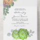 Faire part de mariage rustique tout-en-un avec plantes grasses et verdure avec une carte-réponse perforée facile à détacher.