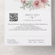 Invitation de mariage tout-en-un avec de jolies fleurs roses poussiéreuses et une bordure chic de cadre doré. L'invitation comprend une carte RSVP perforée avec le code QR de votre site web de mariage et les détails. Conçu par Thisisnotme