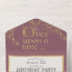 Cette enchanteresse et élégante invitation à la fête tout-en-un présente un arrière - plan de couleur rose pâle poussiéreux et un thème fantaisiste, conte de fées imprimé dans une parties scintillant dorée. Une bande d'horloges fanée apparaît sur la partie supérieure. Un château apparaît en bas avec une calèche à droite. Le texte en haut dit, "Il était une fois..." pour ressembler à un conte de fées, et est écrit dans une élégante police de conception de parties scintillant d'or.