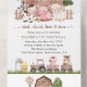 Invite friends and family in style and set the tone for your special day with this charming birthday invitation. Design features farm animals (cow, horse, sheep, pig, rooster, chicken), brown barn and brown tractor on white background.