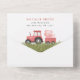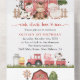 Invite friends and family in style and set the tone for your special day with this charming birthday invitation. Design features farm animals (cow, horse, sheep, pig, rooster, chicken), red barn and red tractor on white background.