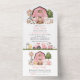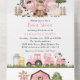 Invite friends and family in style and set the tone for your special day with this charming baby shower invitation. Design features farm animals (cow, horse, sheep, pig, rooster, chicken), pink barn and pink tractor on white background.