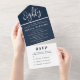 Marine Bleu et blanc, quatre-vingtième anniversaire, moderne, simple, adulte, 80ème anniversaire All in One Invitation. Tri-fold élégant, chic, unique, invitations. Customisez avec vos détails. Commandez à temps pour éviter une déception.