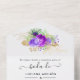 Carton d'invitation de mariage de mardi gras violet et or avec des accents de violet et d'or.